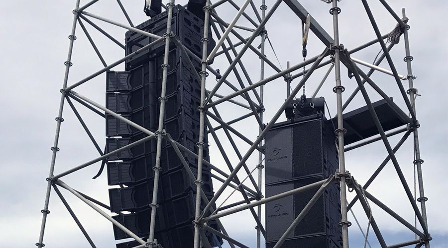 此外,现场还有大型线性阵列RL-1 与 RL-1SUB ,不仅能快速拆装与吊挂,设计上也别出心裁:两侧独特的蝴蝶音场扩声板,可集中高音投射,让声音完美无损传递到现场各个角落;即便在封闭式的大型场地,也能借由模组中的3寸金属振膜与高频平面波发声器,以高频远程投射力度的推送,抵消舞台上可能有的延迟反射,表演者不受干扰,更能专心传达作品的情感与力道。
